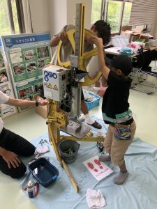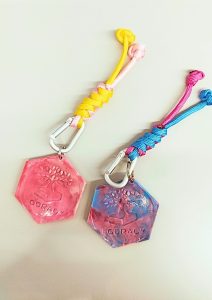 今回は第2回目の開催となり、当社オリジナルのワークシートを使ってプラスチックリサイクルの仕組みを学んだあと、株式会社湘南貿易様のご協力により、マニュアルインジェクション装置を使用した廃プラスチックからのオリジナルキーホルダー作りを行いました。仕上げには、それぞれが好きな色で編んだストラップを取り付けて、自分だけの作品を完成させました。