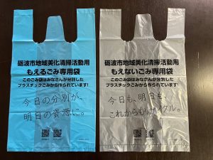 「ごみゼロ運動」は4月・5月に実施され、町内会単位で地域清掃が行われ、今回は、可燃用(ブルー)と不燃用(着色のない自然色)の2種類をご利用いただきます。この機会を通じて、地域から出たプラスチック類が再生資源として活用され、地域の中で資源がめぐる循環の輪が広がっていくことが期待されます。